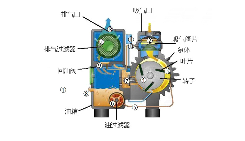 一、在泵的内部装有油雾消除器,能有效地消除泵排出的气体中的油雾,避免油雾对周围环境的污染。
